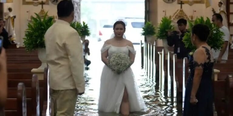 Una pareja en Filipinas llevó a cabo su boda en una iglesia inundada en la ciudad de Malolos, provincia de Bulacán, pese a las condiciones provocadas por el paso del tifón Wipha que no fue suficiente para impedir la ceremonia en la Iglesia de Barasoain, donde…